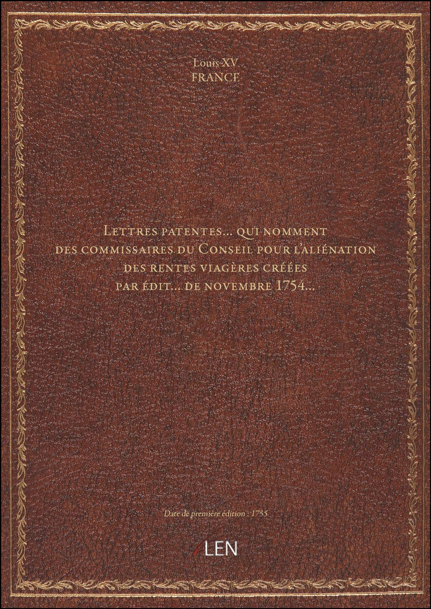 Titre complet : Lettres patentes... qui nomment des commissaires du Conseil pour l'aliénation des rentes viagères créées par édit... de novembre 1754...