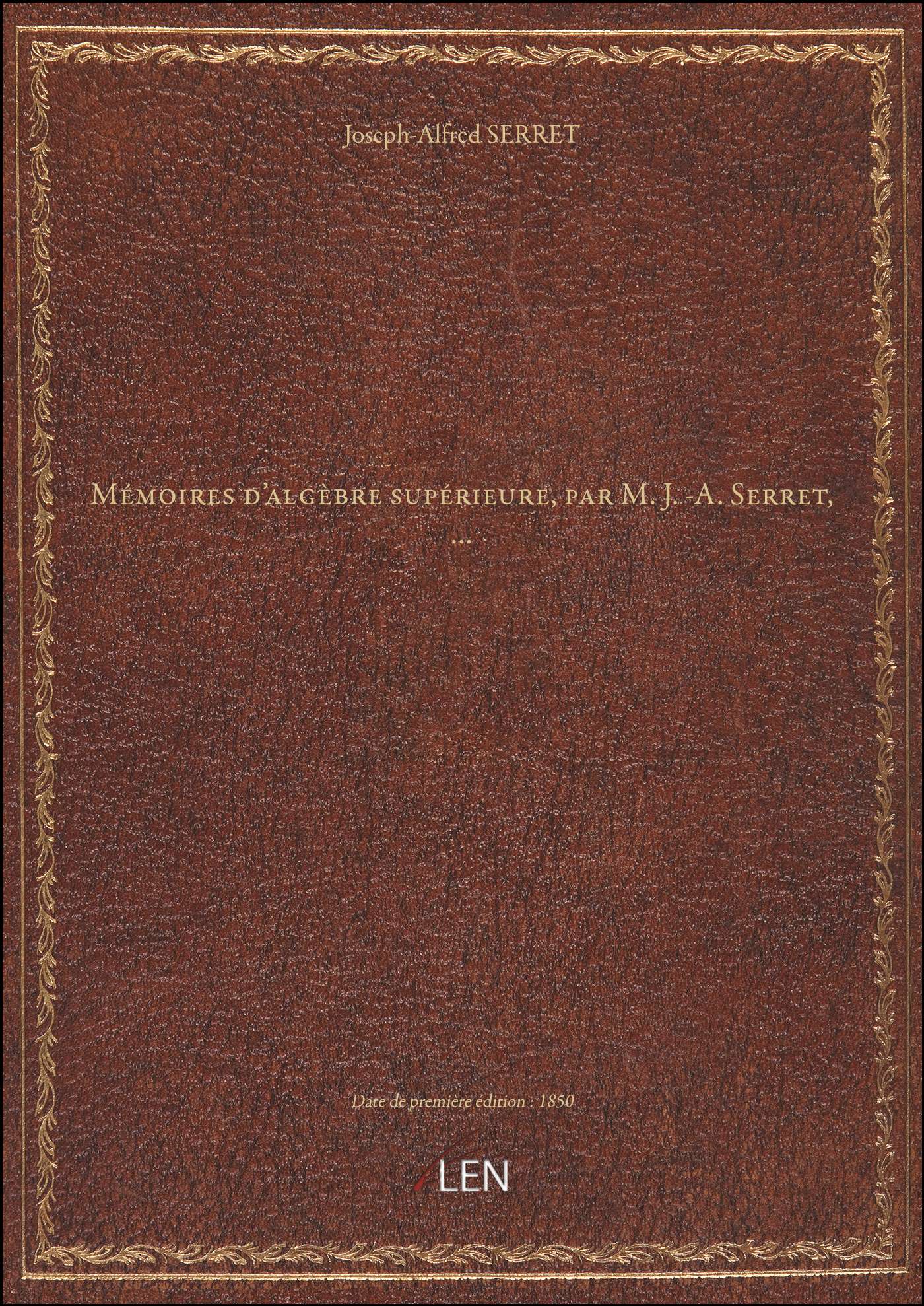 Titre complet : Mémoires d'algèbre supérieure, par M. J.-A. Serret,...