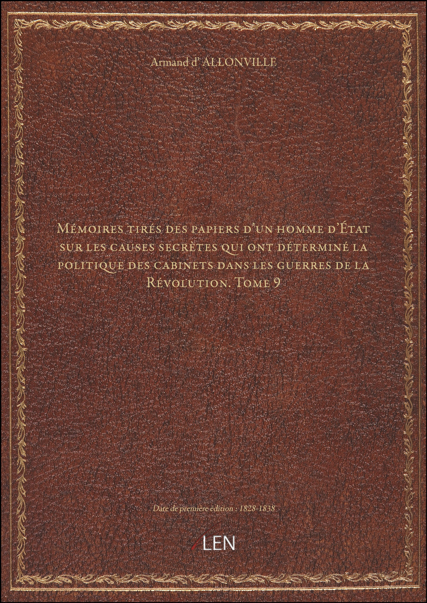 Titre complet : Mémoires tirés des papiers d'un homme d'État sur les causes secrètes qui ont déterminé la politique des cabinets dans les guerres de la Révolution. Tome 9