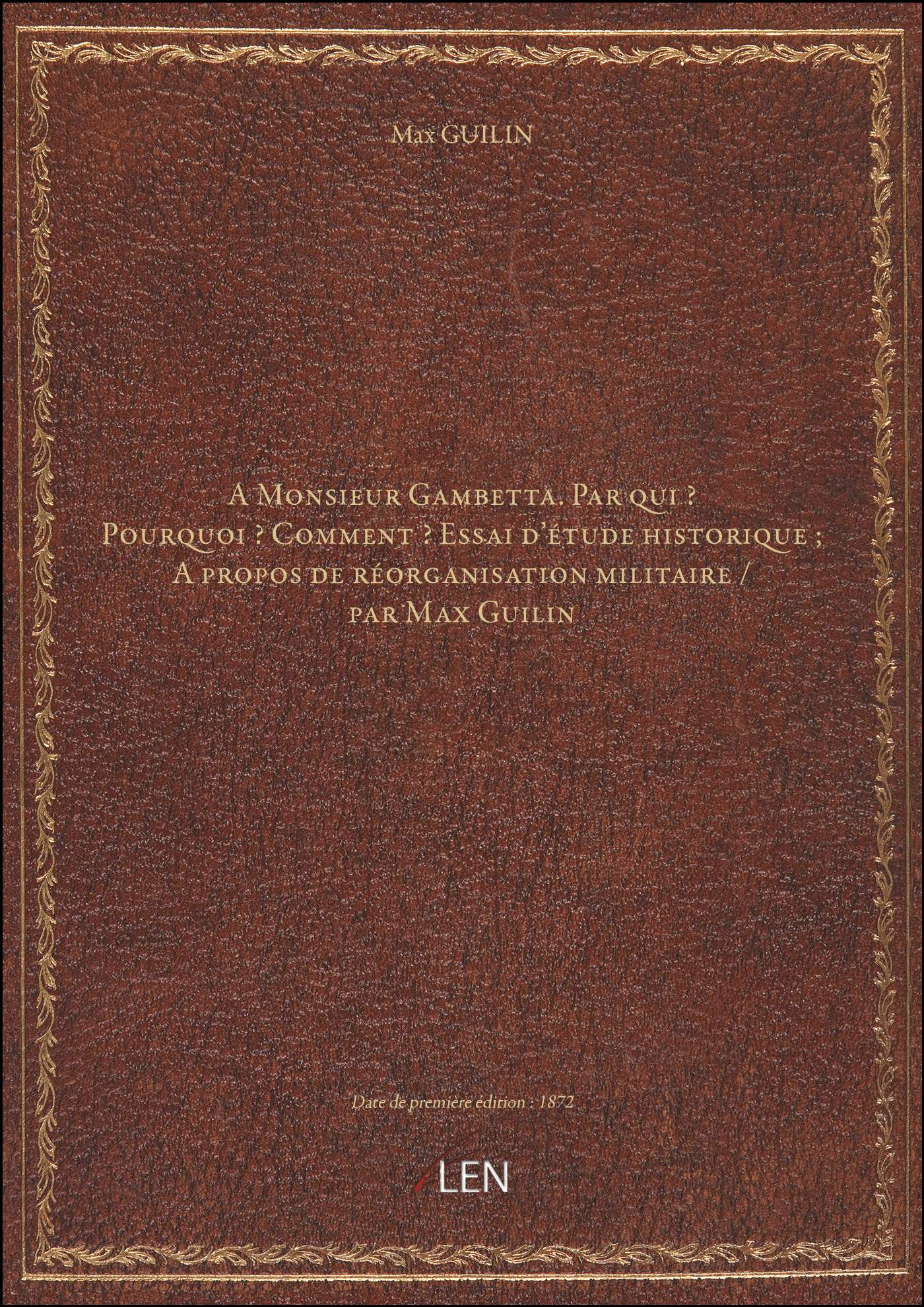 A Monsieur Gambetta. Par qui ? Pourquoi ? Comment ? Essai d'étude historique ; A propos de réorganisation militaire / par Max Guilin