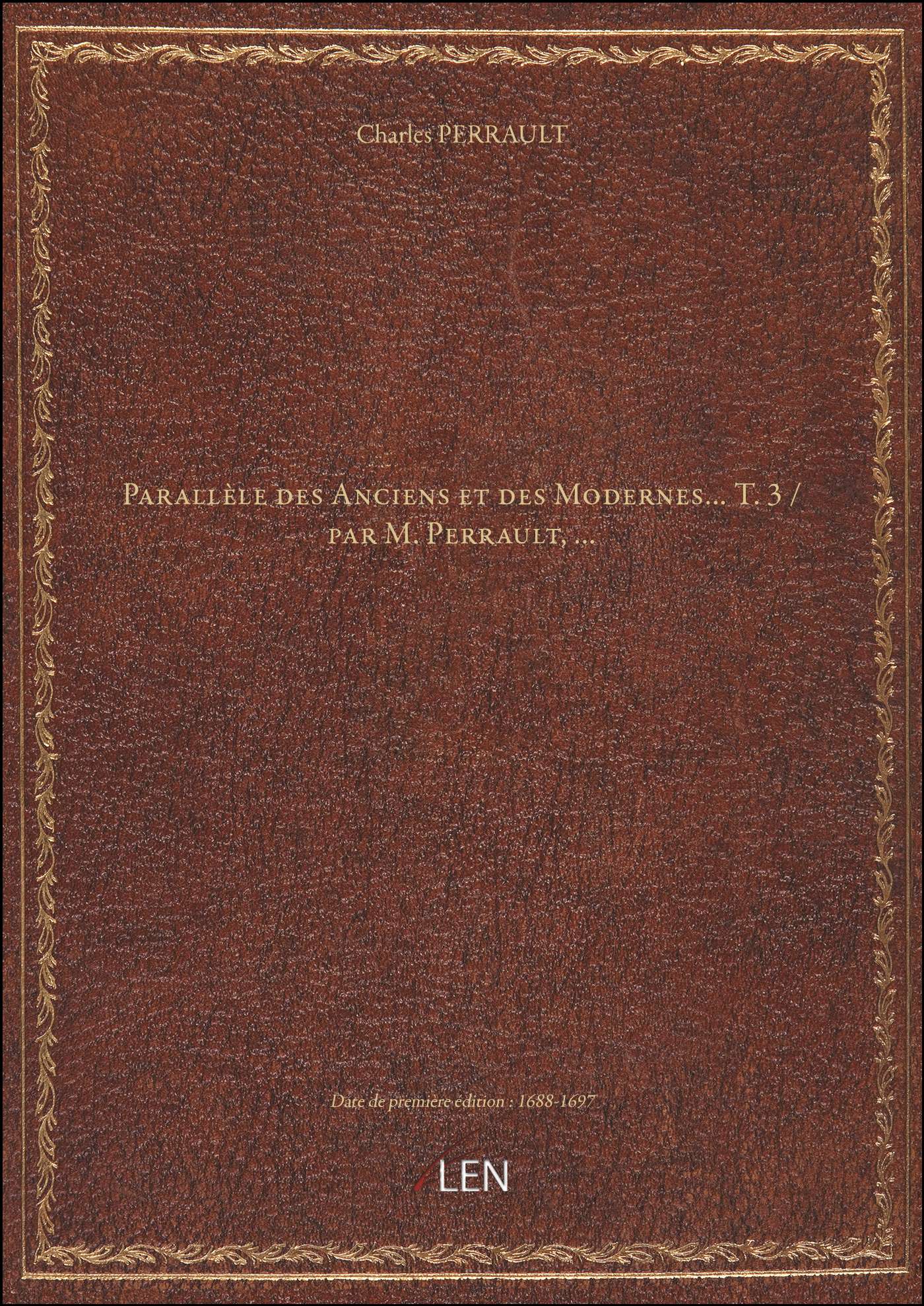 Titre complet : Parallèle des Anciens et des Modernes.... T. 3 / par M. Perrault,...
