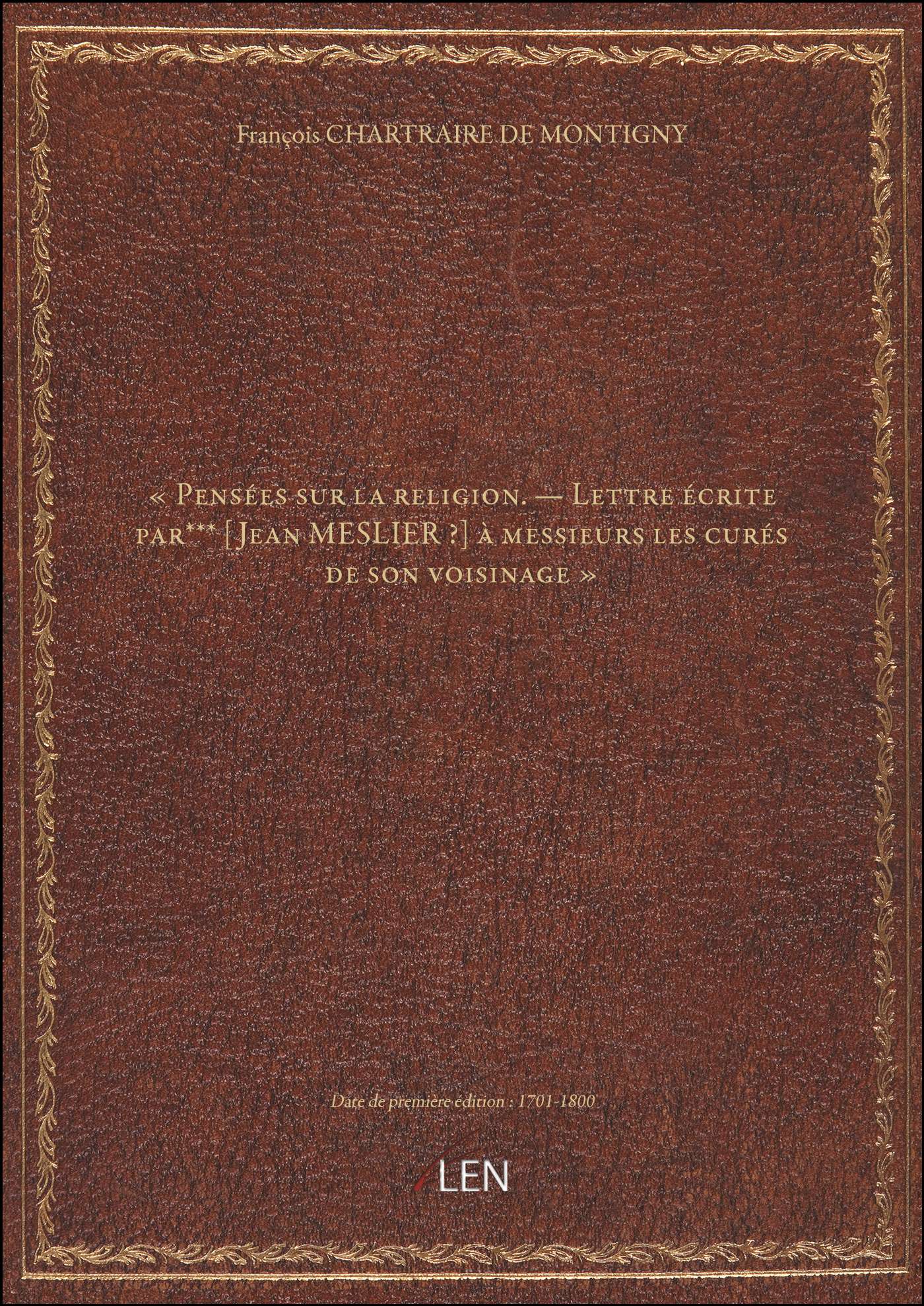 Titre complet : « Pensées sur la religion. — Lettre écrite par*** [Jean MESLIER ?] à messieurs les curés de son voisinage »