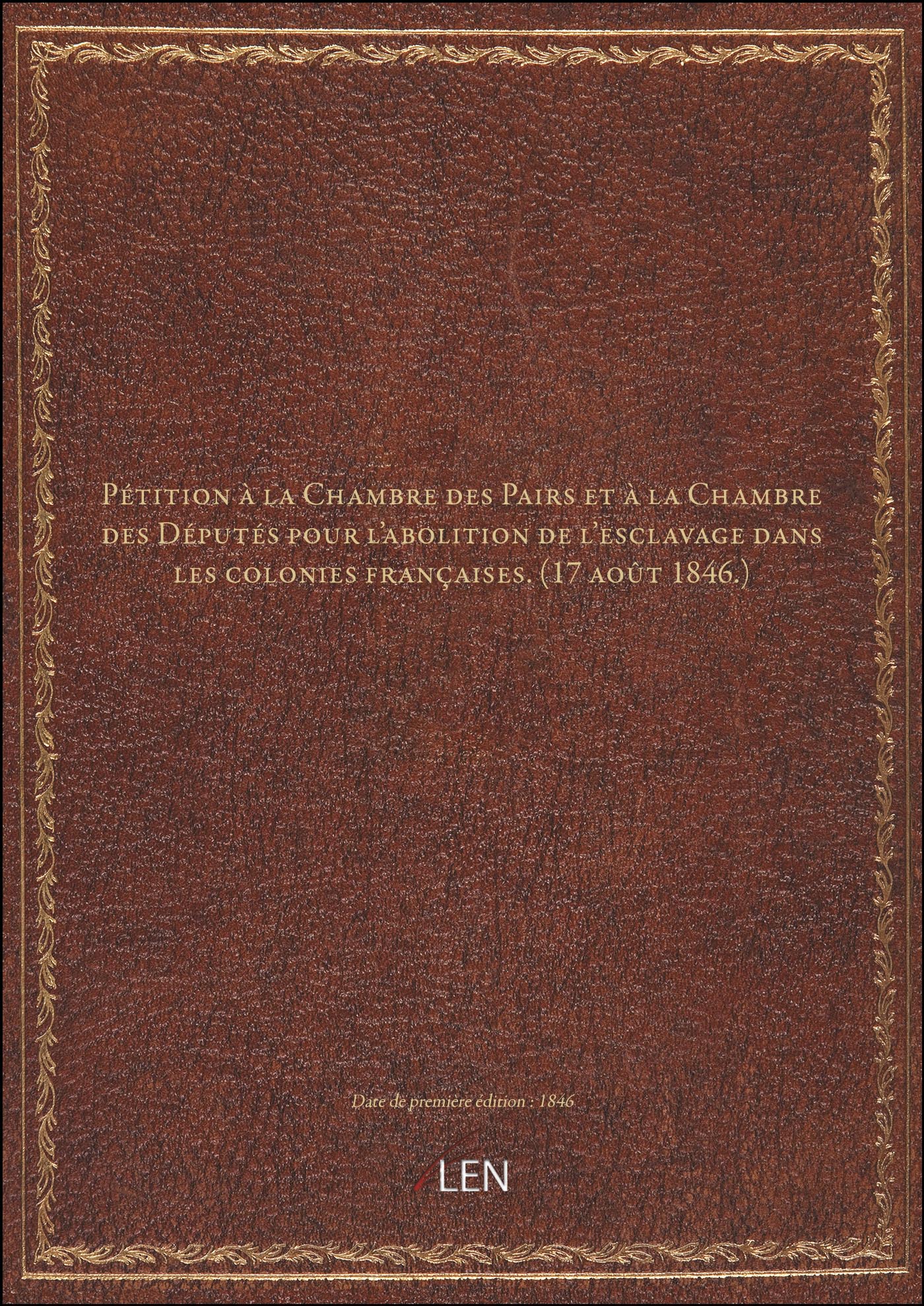 Titre complet : Pétition à la Chambre des Pairs et à la Chambre des Députés pour l'abolition de l'esclavage dans les colonies françaises. (17 août 1846.)