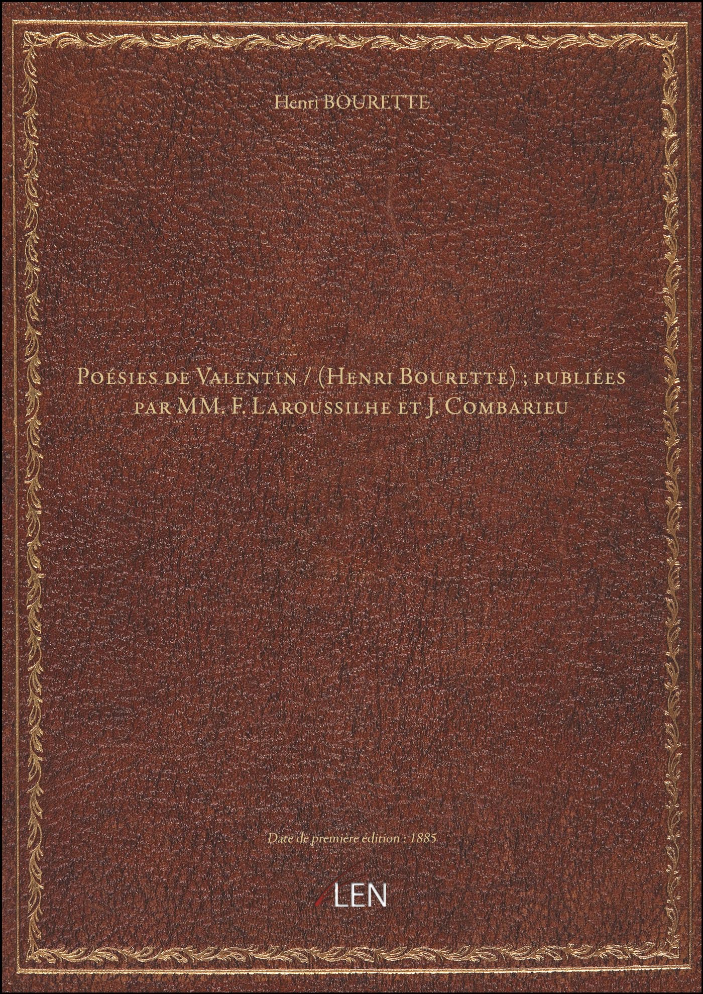 Titre complet : Poésies de Valentin / (Henri Bourette) ; publiées par MM. F. Laroussilhe et J. Combarieu