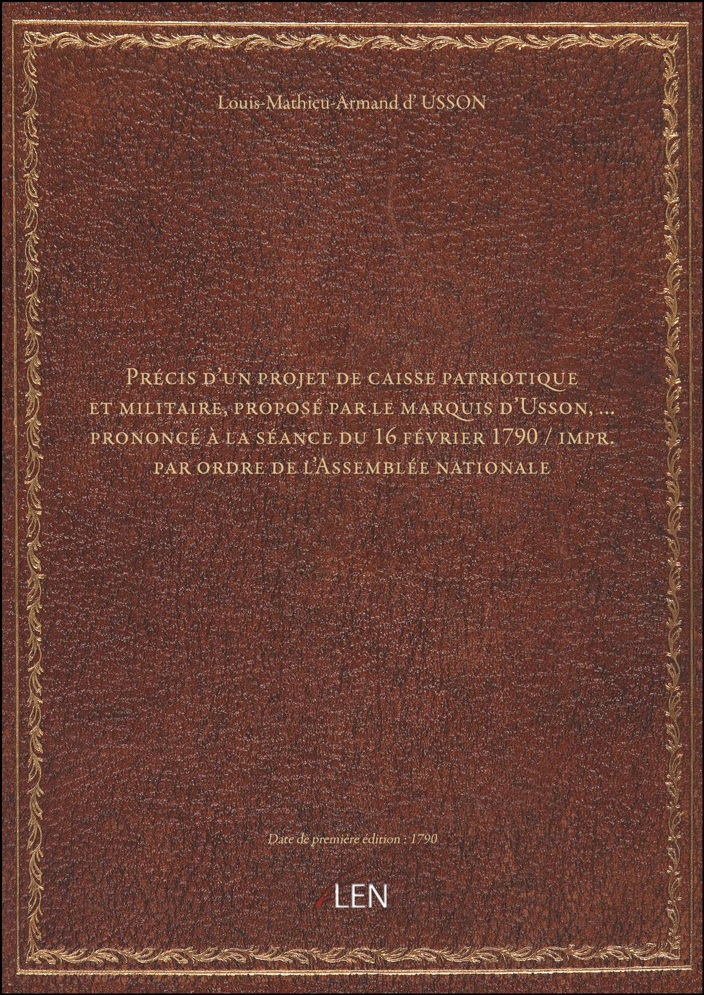 Précis d'un projet de caisse patriotique et militaire, proposé par le marquis d'Usson,... prononcé à la séance du 16 février 1790 ([Reprod.]) / impr. par ordre de l'Assemblée nationale
