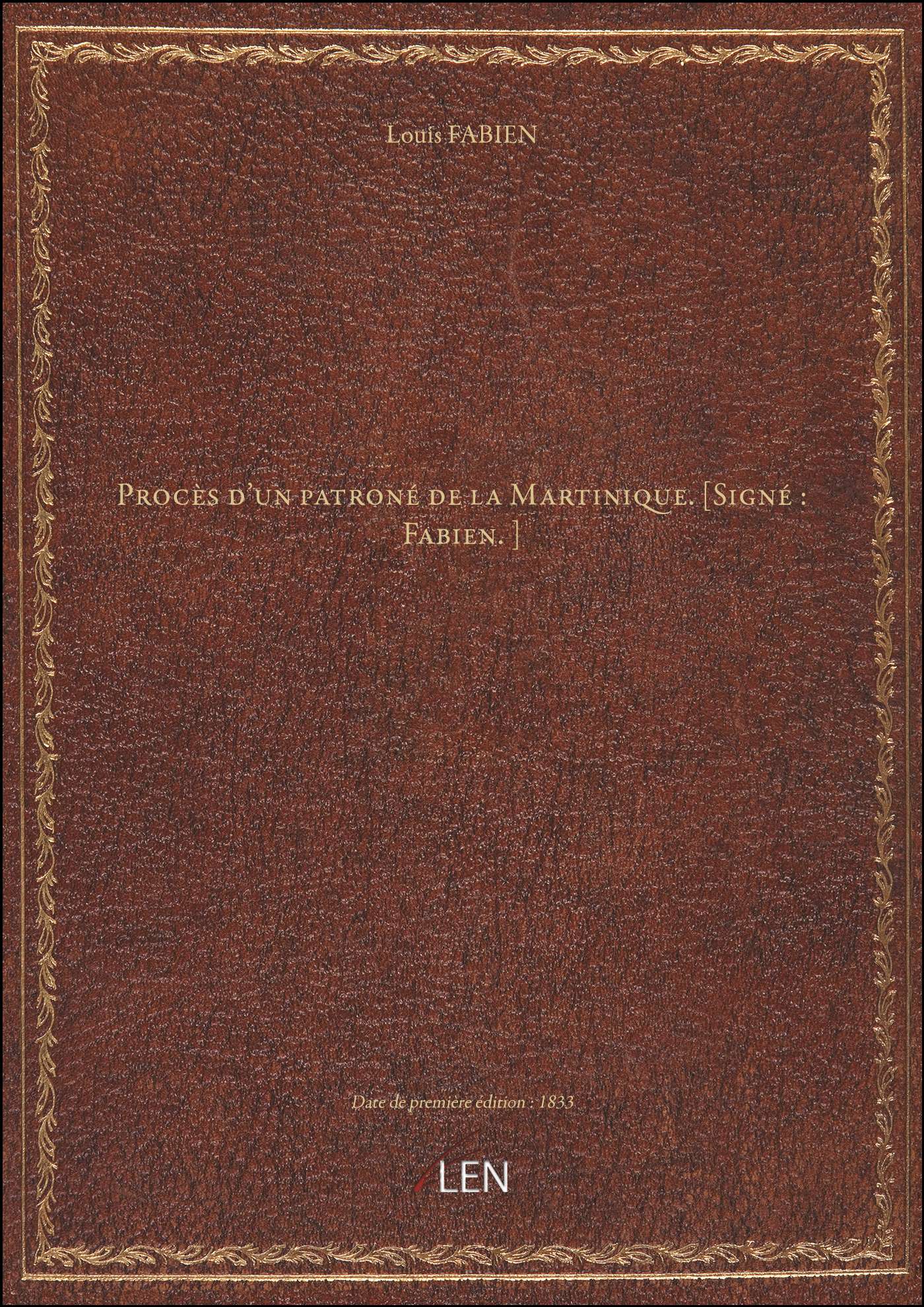 Titre complet : Procès d'un patroné de la Martinique. [Signé : Fabien.]