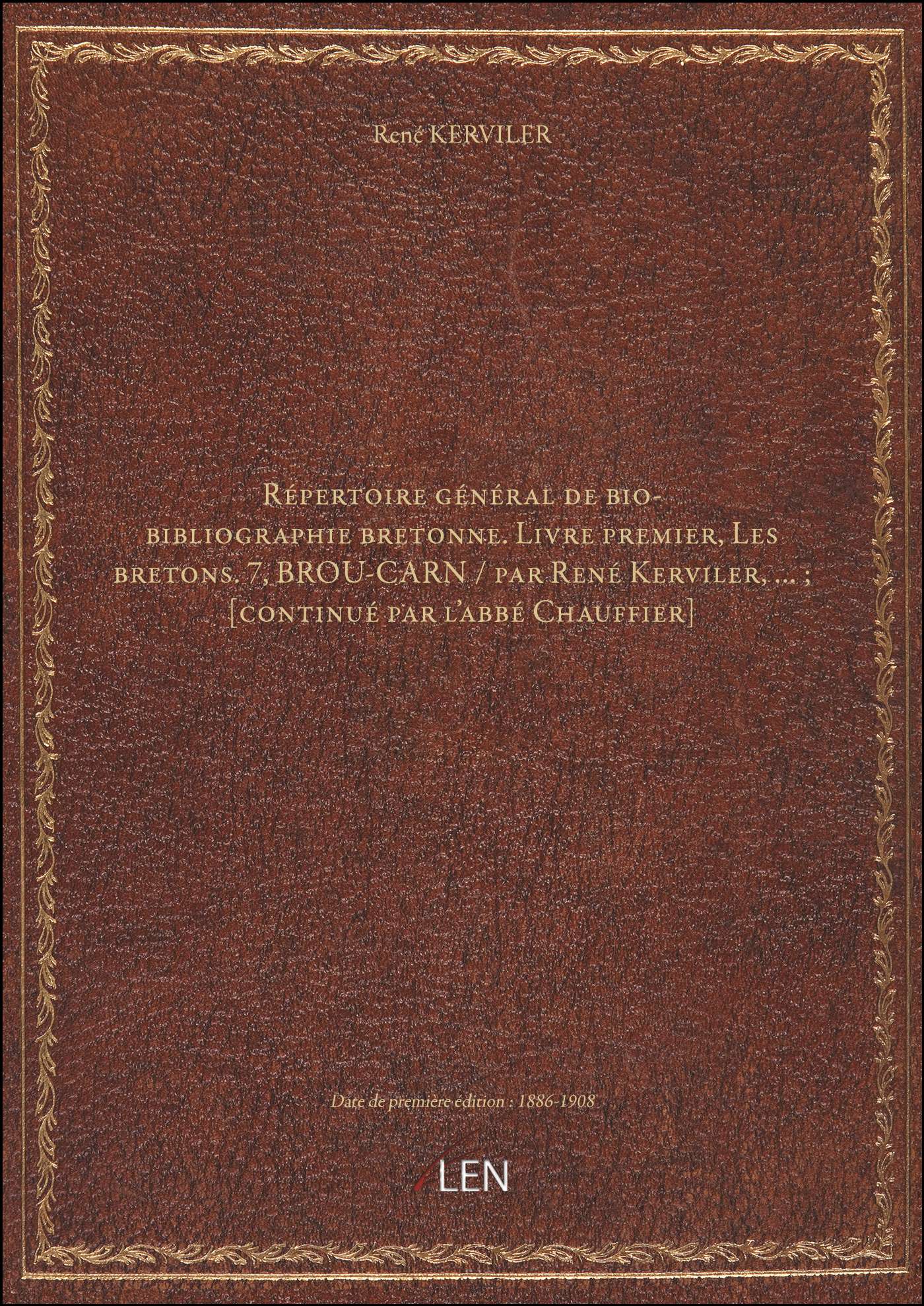 Répertoire général de bio-bibliographie bretonne. Livre premier, Les bretons. 7,BROU-CARN / par René Kerviler,... ; [continué par l'abbé Chauffier]