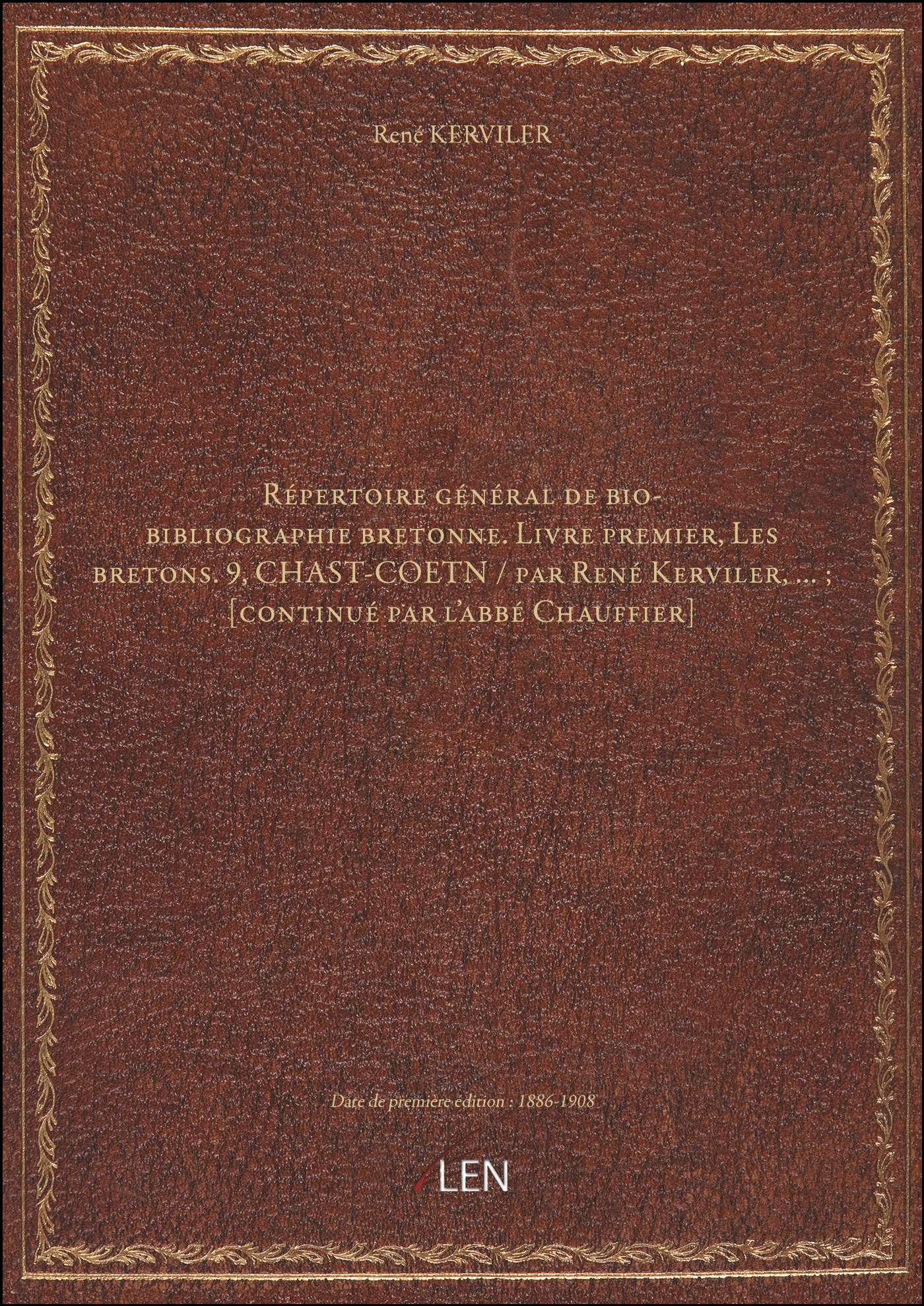 Répertoire général de bio-bibliographie bretonne. Livre premier, Les bretons. 9,CHAST-COETN / par René Kerviler,... ; [continué par l'abbé Chauffier]