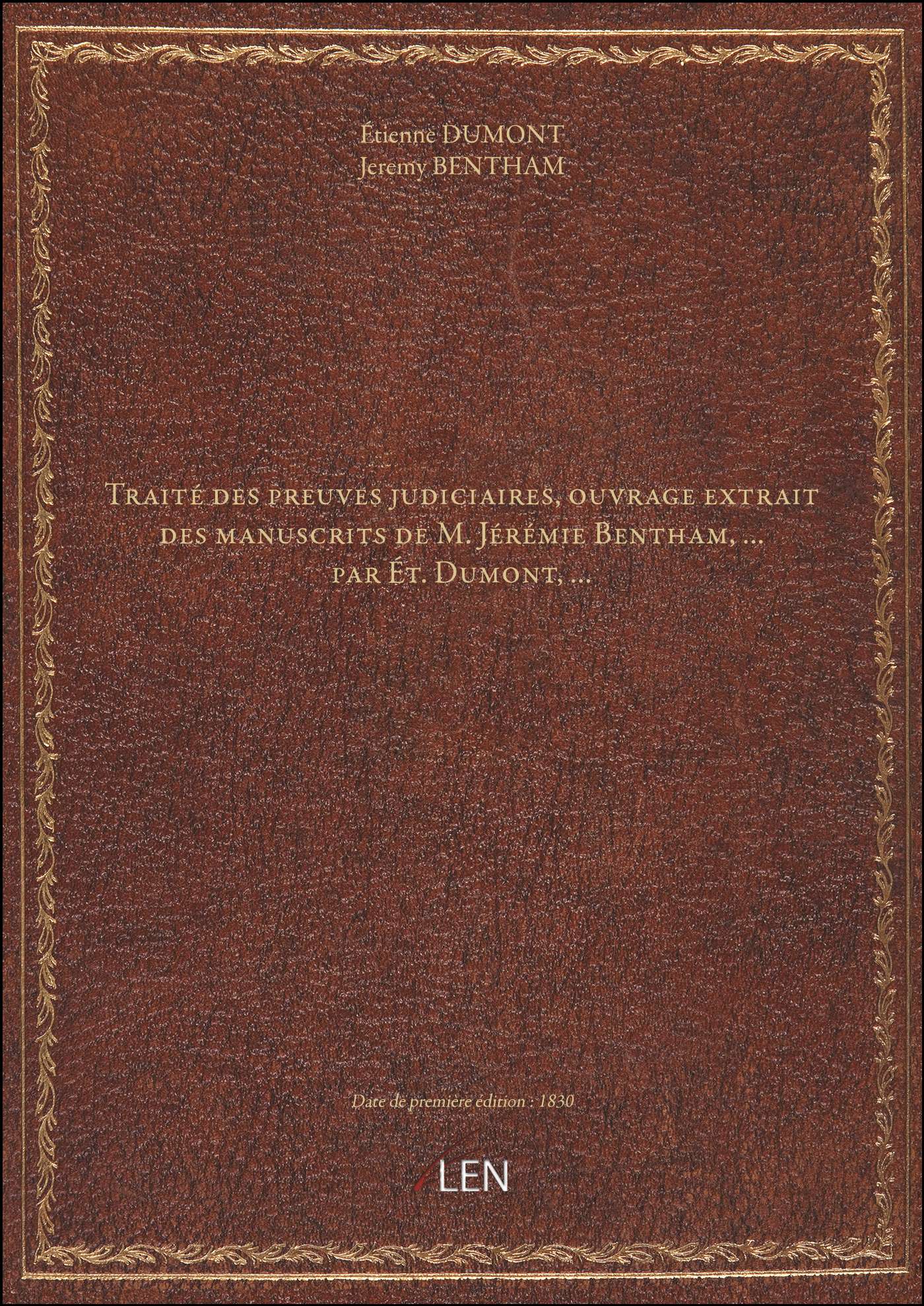 Titre complet : Traité des preuves judiciaires, ouvrage extrait des manuscrits de M. Jérémie Bentham,... par Ét. Dumont,...