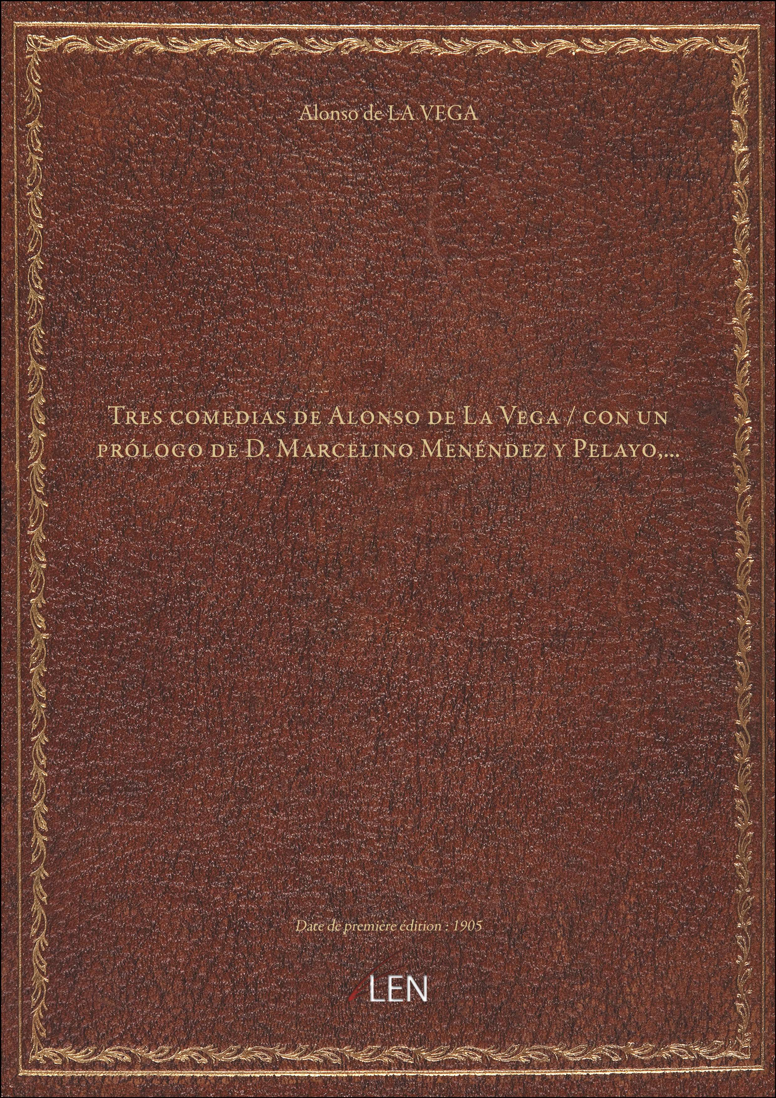 Titre complet : Tres comedias de Alonso de La Vega / con un prólogo de D. Marcelino Menéndez y Pelayo,...