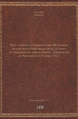 Édit... portant suppression des 100 charges de controlleursmarqueurs d... 20,00 € Sélectionner le voteGive it 1/5Give it 2/5Give it 3/5Give it 4/5Give it 5/5 Aucun vote pour le moment