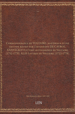 Correspondance de VOLTAIRE ; matériaux d'une édition réunis par l'inte... 40,00 € Sélectionner le voteGive it 1/5Give it 2/5Give it 3/5Give it 4/5Give it 5/5 Aucun vote pour le moment