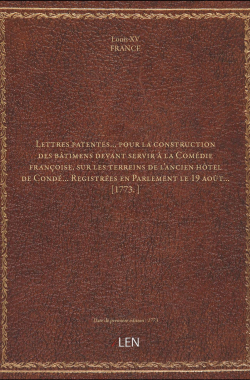 Lettres patentes... pour la construction des bâtimens devant servir à ... 20,00 € Sélectionner le voteGive it 1/5Give it 2/5Give it 3/5Give it 4/5Give it 5/5 Aucun vote pour le moment