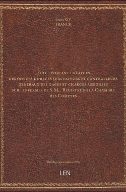 Édit... portant création des offices de receveurs payeurs et controlle... 20,00 € Sélectionner le voteGive it 1/5Give it 2/5Give it 3/5Give it 4/5Give it 5/5 Aucun vote pour le moment