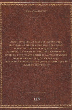 Arrêt du conseil d'Etat qui ordonne que les verres à boire de verre bl... 20,00 € Sélectionner le voteGive it 1/5Give it 2/5Give it 3/5Give it 4/5Give it 5/5 Aucun vote pour le moment