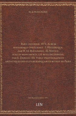 Paris incendié. 1871. Album historique contenant : I. Historique, par ... 20,00 € Sélectionner le voteGive it 1/5Give it 2/5Give it 3/5Give it 4/5Give it 5/5 Aucun vote pour le moment