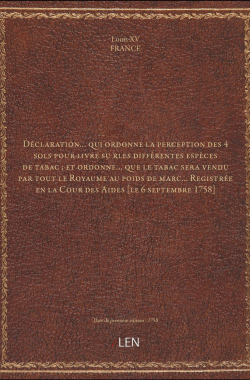 Déclaration... qui ordonne la perception des 4 sols pour livre su rles... 20,00 € Sélectionner le voteGive it 1/5Give it 2/5Give it 3/5Give it 4/5Give it 5/5 Aucun vote pour le moment
