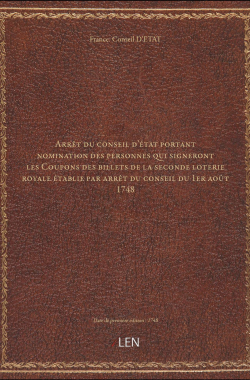 Arrêt du conseil d'état portant nomination des personnes qui signeront... 20,00 € Sélectionner le voteGive it 1/5Give it 2/5Give it 3/5Give it 4/5Give it 5/5 Aucun vote pour le moment