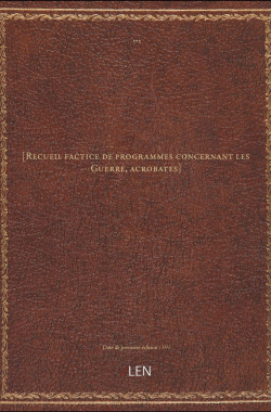 [Recueil factice de programmes concernant les Guerre, acrobates] 20,00 € Sélectionner le voteGive it 1/5Give it 2/5Give it 3/5Give it 4/5Give it 5/5 Aucun vote pour le moment