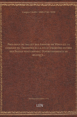 Prologue du ballet des Amours de Vénus et la comédie du Triomphe de la... 20,00 € Sélectionner le voteGive it 1/5Give it 2/5Give it 3/5Give it 4/5Give it 5/5 Aucun vote pour le moment