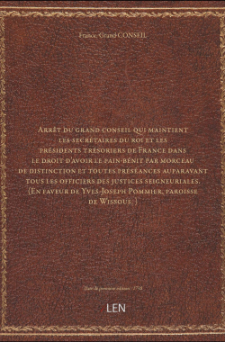 Arrêt du grand conseil qui maintient les secrétaires du roi et les pré... 20,00 € Sélectionner le voteGive it 1/5Give it 2/5Give it 3/5Give it 4/5Give it 5/5 Aucun vote pour le moment