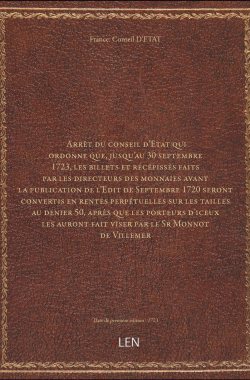 Arrêt du conseil d'Etat qui ordonne que, jusqu'au 30 septembre 1723, l... 20,00 € Sélectionner le voteGive it 1/5Give it 2/5Give it 3/5Give it 4/5Give it 5/5 Aucun vote pour le moment