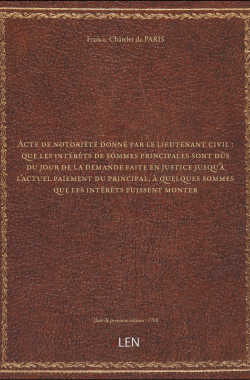 Acte de notoriété donné par le lieutenant civil : que les intérêts de ... 20,00 € Sélectionner le voteGive it 1/5Give it 2/5Give it 3/5Give it 4/5Give it 5/5 Aucun vote pour le moment