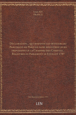 Déclaration... qui dispense les officiers du Parlement de Paris de fai... 20,00 € Sélectionner le voteGive it 1/5Give it 2/5Give it 3/5Give it 4/5Give it 5/5 Aucun vote pour le moment