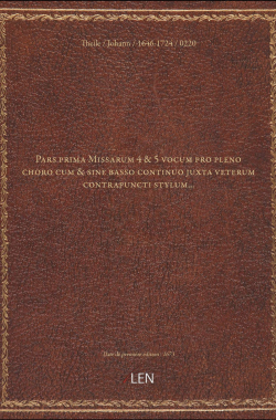 Pars prima Missarum 4 & 5 vocum pro pleno choro cum & sine basso conti... 20,00 € Sélectionner le voteGive it 1/5Give it 2/5Give it 3/5Give it 4/5Give it 5/5 Aucun vote pour le moment