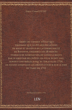 Arrêt du conseil d'Etat qui ordonne que les 83 adjudications de biens ... 20,00 € Sélectionner le voteGive it 1/5Give it 2/5Give it 3/5Give it 4/5Give it 5/5 Aucun vote pour le moment