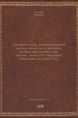 Lettres patentes... portant règlement pour les avocats en titre d'offi... 20,00 € Sélectionner le voteGive it 1/5Give it 2/5Give it 3/5Give it 4/5Give it 5/5 Aucun vote pour le moment