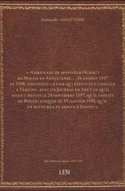 « Ambassade de monsieur Huraut de Maisse en Angleterre..., ès années 1... 60,00 € Sélectionner le voteGive it 1/5Give it 2/5Give it 3/5Give it 4/5Give it 5/5 Aucun vote pour le moment