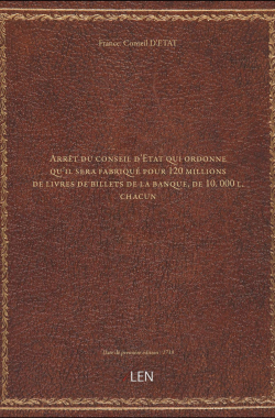 Arrêt du conseil d'Etat qui ordonne qu'il sera fabriqué pour 120 milli... 20,00 € Sélectionner le voteGive it 1/5Give it 2/5Give it 3/5Give it 4/5Give it 5/5 Aucun vote pour le moment