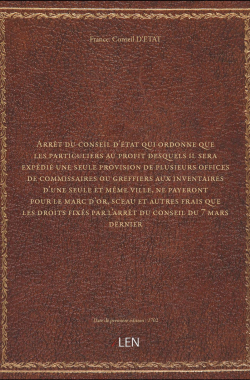 Arrêt du conseil d'état qui ordonne que les particuliers au profit des... 20,00 € Sélectionner le voteGive it 1/5Give it 2/5Give it 3/5Give it 4/5Give it 5/5 Aucun vote pour le moment