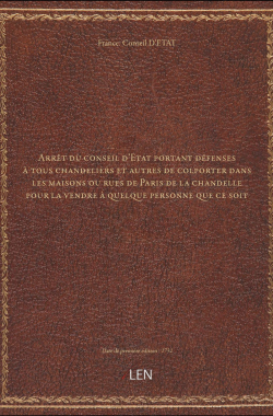 Arrêt du conseil d'Etat portant défenses à tous chandeliers et autres ... 20,00 € Sélectionner le voteGive it 1/5Give it 2/5Give it 3/5Give it 4/5Give it 5/5 Aucun vote pour le moment