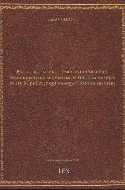 Ballet des saisons... [Paroles de l'abbé Pic]. Seconde édition augment... 115,00 € Sélectionner le voteGive it 1/5Give it 2/5Give it 3/5Give it 4/5Give it 5/5 Aucun vote pour le moment