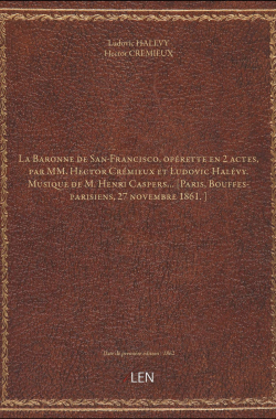 La Baronne de San-Francisco, opérette en 2 actes, par MM. Hector Crémi... 15,00 € Sélectionner le voteGive it 1/5Give it 2/5Give it 3/5Give it 4/5Give it 5/5 Aucun vote pour le moment