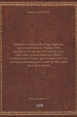 Arrêt du conseil d'Etat qui ordonne qu'à commencer du 19 mars 1730, ju... 20,00 € Sélectionner le voteGive it 1/5Give it 2/5Give it 3/5Give it 4/5Give it 5/5 Aucun vote pour le moment