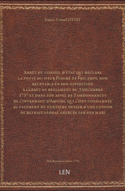 Arrêt du conseil d'état qui déclare la veuve du sieur Pingré de Fricam... 20,00 € Sélectionner le voteGive it 1/5Give it 2/5Give it 3/5Give it 4/5Give it 5/5 Aucun vote pour le moment