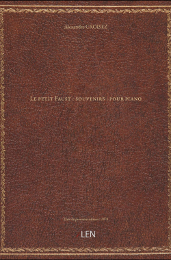 Le petit Faust : souvenirs : pour piano / par A. Croisez ; [d'après l'... 25,00 € Sélectionner le voteGive it 1/5Give it 2/5Give it 3/5Give it 4/5Give it 5/5 Aucun vote pour le moment