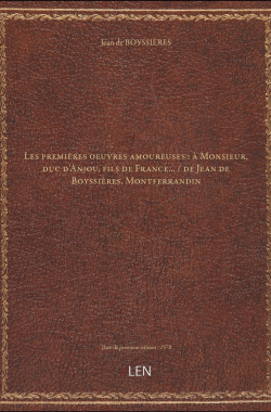 Les premières oeuvres amoureuses : à Monsieur, duc d'Anjou, fils de Fr... 45,00 € Sélectionner le voteGive it 1/5Give it 2/5Give it 3/5Give it 4/5Give it 5/5 Aucun vote pour le moment