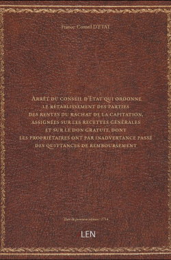 Arrêt du conseil d'Etat qui ordonne le rétablissement des parties des ... 20,00 € Sélectionner le voteGive it 1/5Give it 2/5Give it 3/5Give it 4/5Give it 5/5 Aucun vote pour le moment