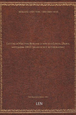 Lettre d'Hector Berlioz à son fils Louis, [Paris, novembre 1862] (manu... 20,00 € Sélectionner le voteGive it 1/5Give it 2/5Give it 3/5Give it 4/5Give it 5/5 Aucun vote pour le moment