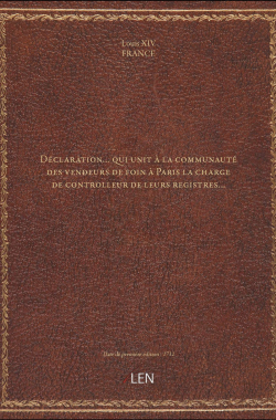 Déclaration... qui unit à la communauté des vendeurs de foin à Paris l... 20,00 € Sélectionner le voteGive it 1/5Give it 2/5Give it 3/5Give it 4/5Give it 5/5 Aucun vote pour le moment