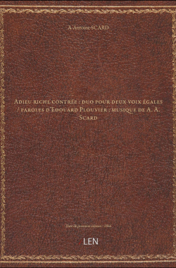 Adieu riche contrée : duo pour deux voix égales / paroles d'Edouard Pl... 20,00 € Sélectionner le voteGive it 1/5Give it 2/5Give it 3/5Give it 4/5Give it 5/5 Aucun vote pour le moment