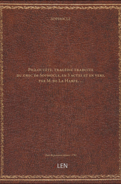 Philoctète , tragédie traduite du grec de Sophocle, en 3 actes et en v... 20,00 € Sélectionner le voteGive it 1/5Give it 2/5Give it 3/5Give it 4/5Give it 5/5 Aucun vote pour le moment