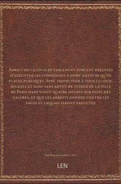 Arrest de la cour de parlement portant défenses d'exécuter les condemn... 25,00 € Sélectionner le voteGive it 1/5Give it 2/5Give it 3/5Give it 4/5Give it 5/5 Aucun vote pour le moment