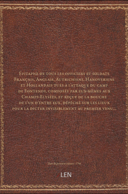 Epitaphe de tous les officiers et soldats Français, Anglais, Autrichie... 15,00 € Sélectionner le voteGive it 1/5Give it 2/5Give it 3/5Give it 4/5Give it 5/5 Aucun vote pour le moment
