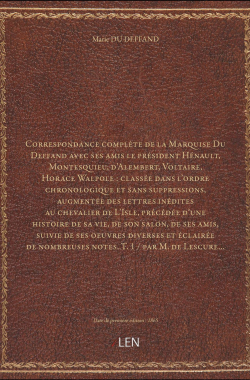 Correspondance complète de la Marquise Du Deffand avec ses amis le pré... 90,00 € Sélectionner le voteGive it 1/5Give it 2/5Give it 3/5Give it 4/5Give it 5/5 Aucun vote pour le moment