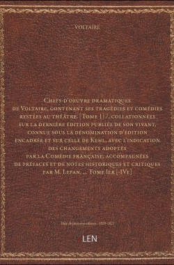 Chefs-d'oeuvre dramatiques de Voltaire, contenant ses tragédies et com... 55,00 € Sélectionner le voteGive it 1/5Give it 2/5Give it 3/5Give it 4/5Give it 5/5 Aucun vote pour le moment